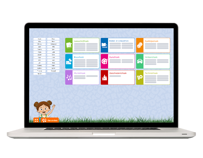 In de software is een digitaal planbord inbegrepen. Bij elk blok krijg je uitgewerkte ideeën voor hoeken- en groepswerk, afgestemd op het thema en de nieuwe vaardigheden van je klas. Met het planbord deel je je leerlingen eenvoudig in bij activiteiten, of laat je ze zelf een plek kiezen.